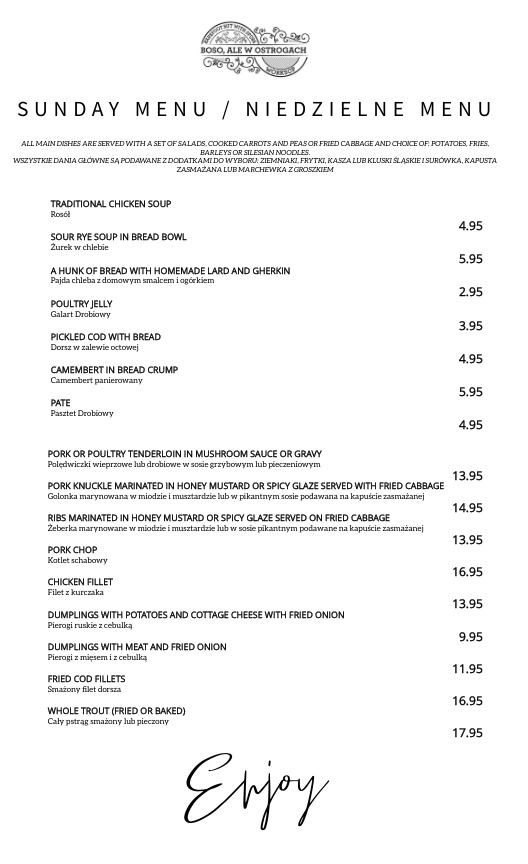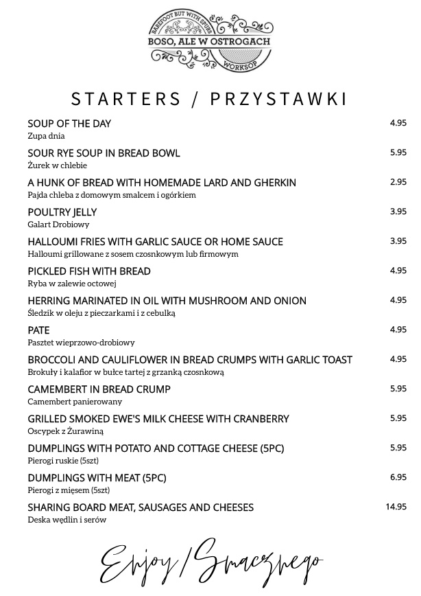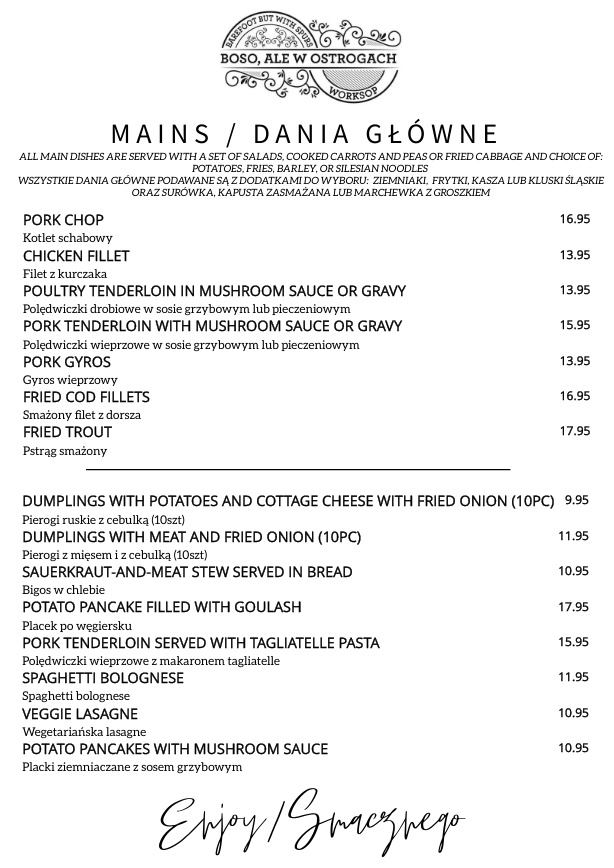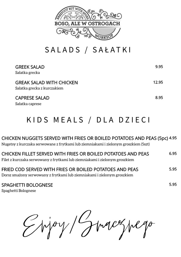 Whether stopping by for a quick coffee and cake or settling in for a full meal, the food and drinks at Boso, ale w Ostrogach reflect a balance of traditional comfort and everyday enjoyment, supported by attentive service and a warm, inviting setting.